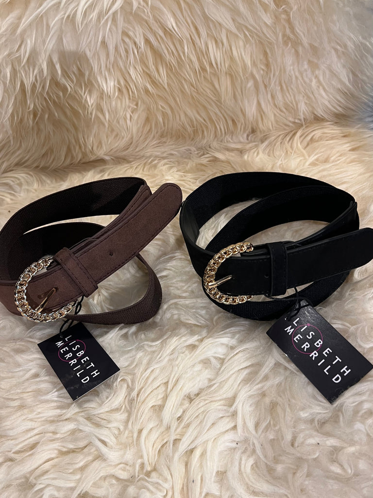 Elastik Bælte M Guld Spænde Brun og Sort