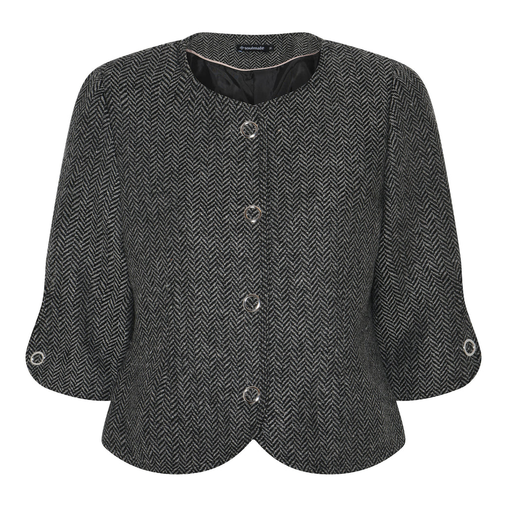 Let og behagelig bluse med moderne grafisk mønster. Den har rund hals og korte ærmer.
