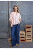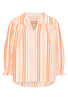 Bluse med lodrette striber, afslappet pasform og split-halsudskæring. Lange ærmer med rynkede manchetter og let buet kant giver et moderne udtryk.
