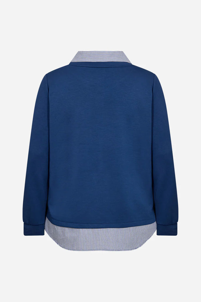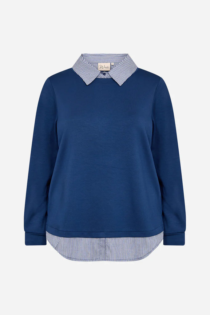 WA-SABINA 63 Sweatshirt er fremstillet af 48 % modal, 48 % polyester og 4 % elastan. Den har indbyggede skjortedetaljer med stribet krave og kant. Sæt den sammen med jeans eller bukser for et smart og afslappet look.