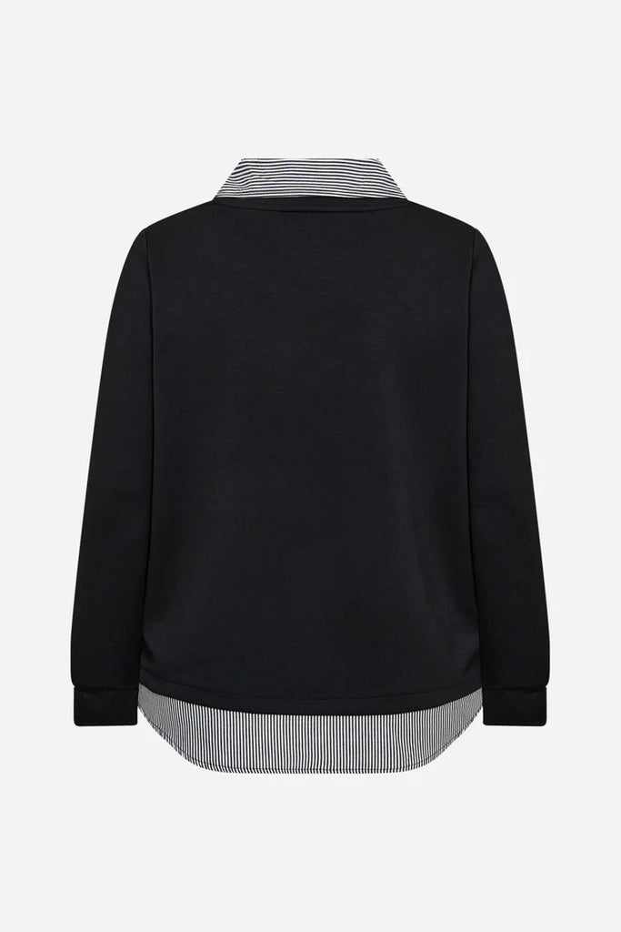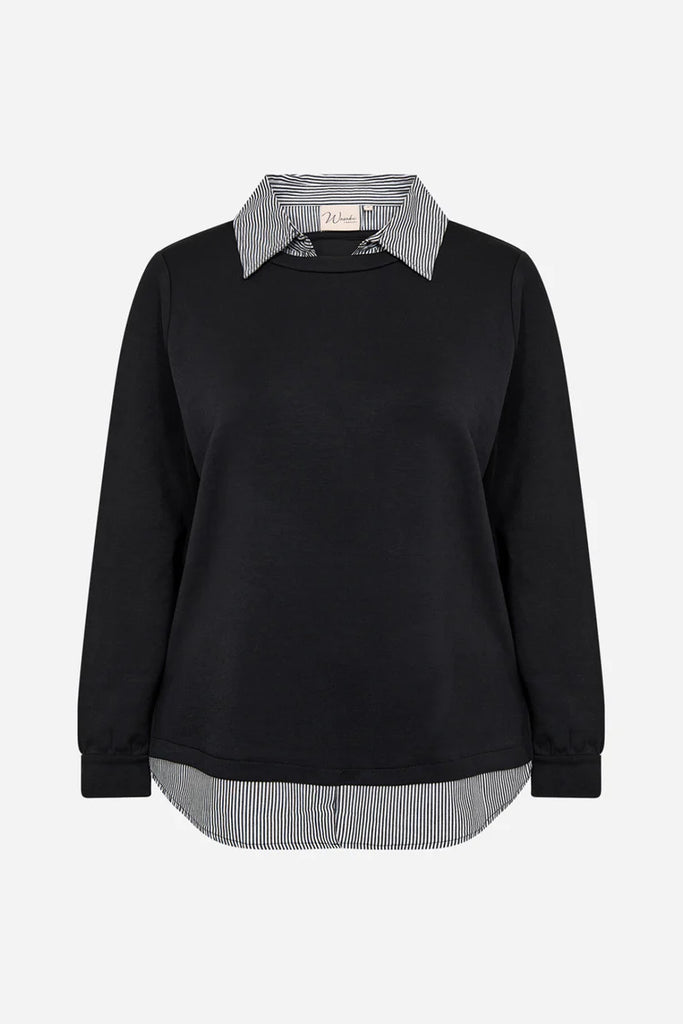 WA-SABINA 63 Sweatshirt er fremstillet af 48 % modal, 48 % polyester og 4 % elastan. Den har indbyggede skjortedetaljer med stribet krave og kant. Sæt den sammen med jeans eller bukser for et smart og afslappet look.