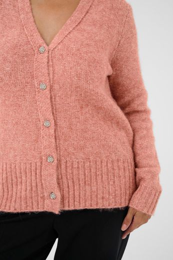 Damecardigan med afslappet pasform, V-udskæring og halvlange ærmer giver god komfort og alsidighed. Blød tekstur og knaplukning foran gør den velegnet til lag-på-lag styling.