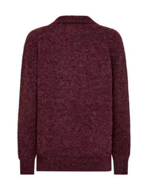 Pullover fra Freequent i en blød kvalitet med en ribstrikket struktur. Pulloveren har lange ærmer, polokrave, V-udskæring, brede ribkanter samt en regulær pasform.