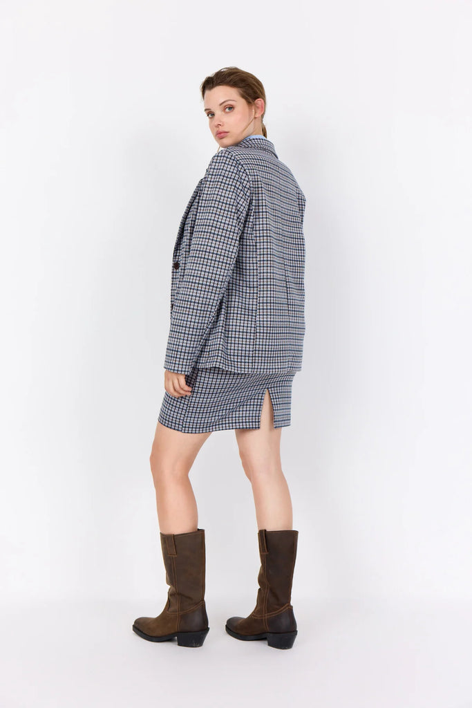 WA-SENADA 1 er en klassisk blazer fremstillet af 98 % genanvendt polyester og 2 % genanvendt elastan. Blazeren har et klassisk revers med hak, to knapper og et houndstooth-print med klaplommer. Sæt den sammen med skræddersyede bukser og en skarp skjorte for et raffineret look.