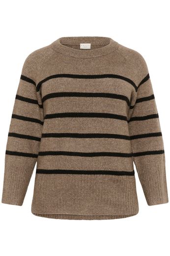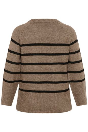 Striktrøje med lige pasform, rund hals og lange ærmer. Har vandrette striber samt ribkanter ved ærmer og bund. Blød tekstur, hofte længde.