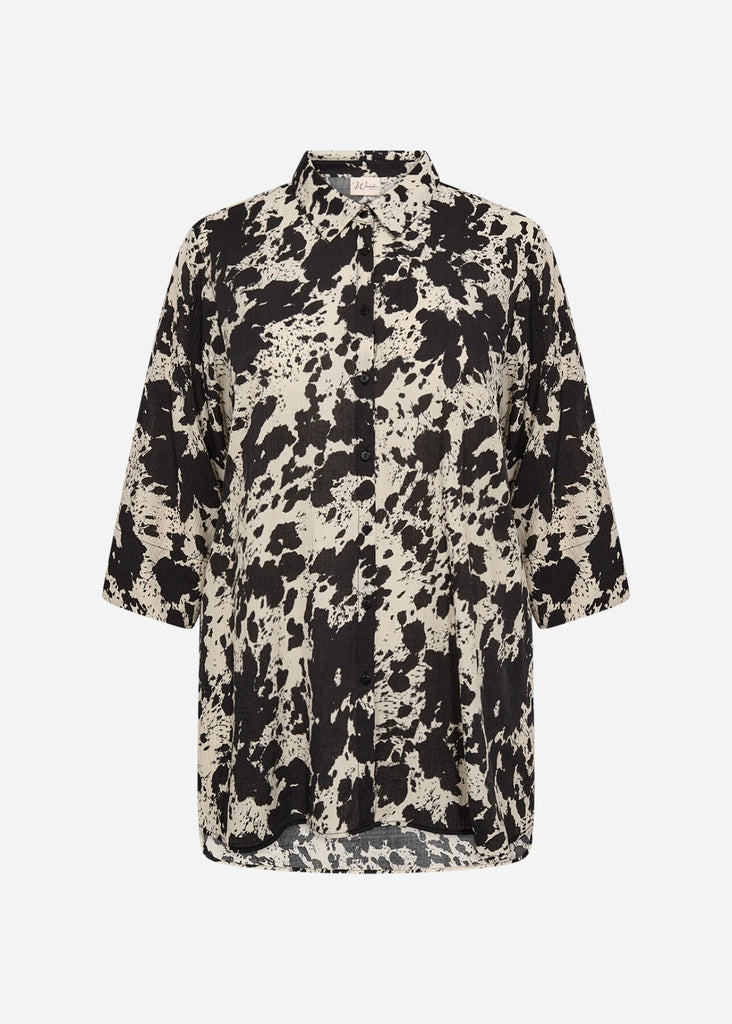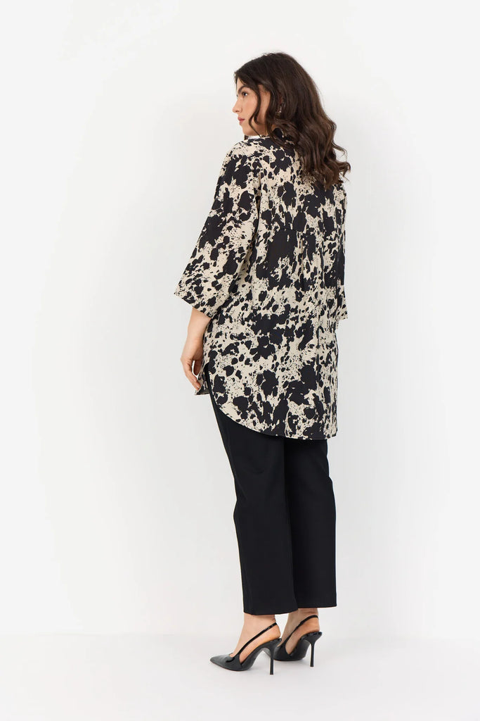 WA-NIKITA 3 er en skjorte fremstillet af 85 % LENZING™ ECOVERO™-viskose og 15 % nylon. Den har en klassisk krave, knaplukning foran og et markant abstrakt print med en længere kant bagpå. Sæt den sammen med jeans for et afslappet look eller skræddersyede bukser for et smart outfit.