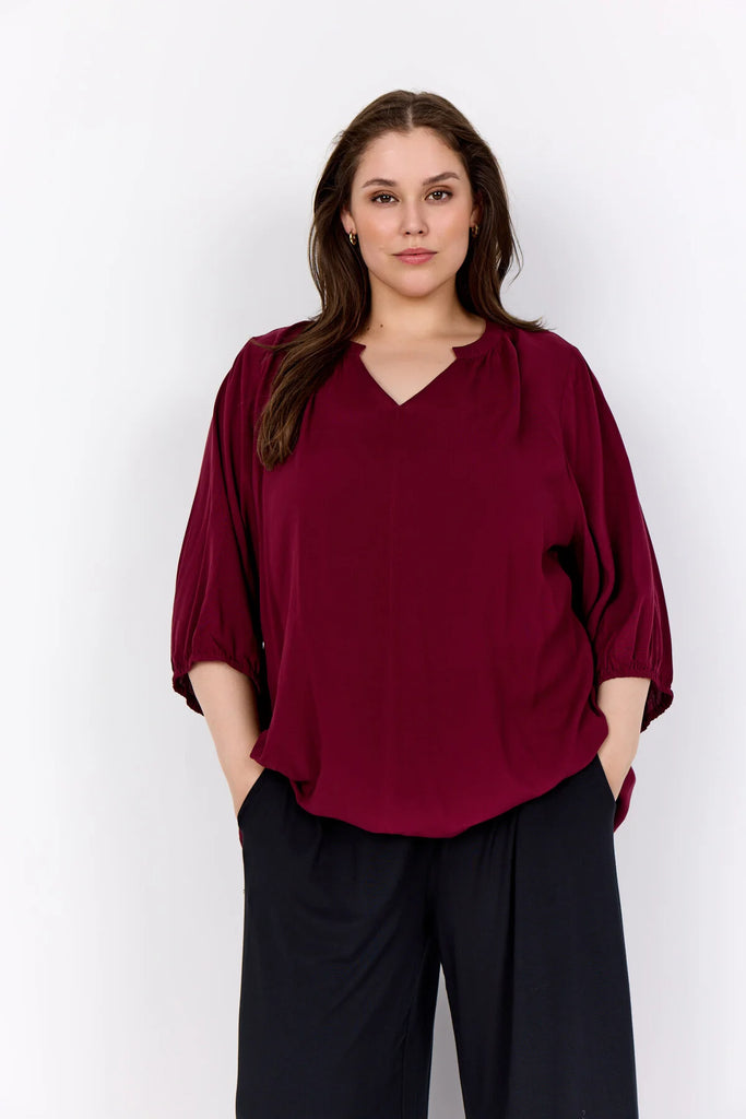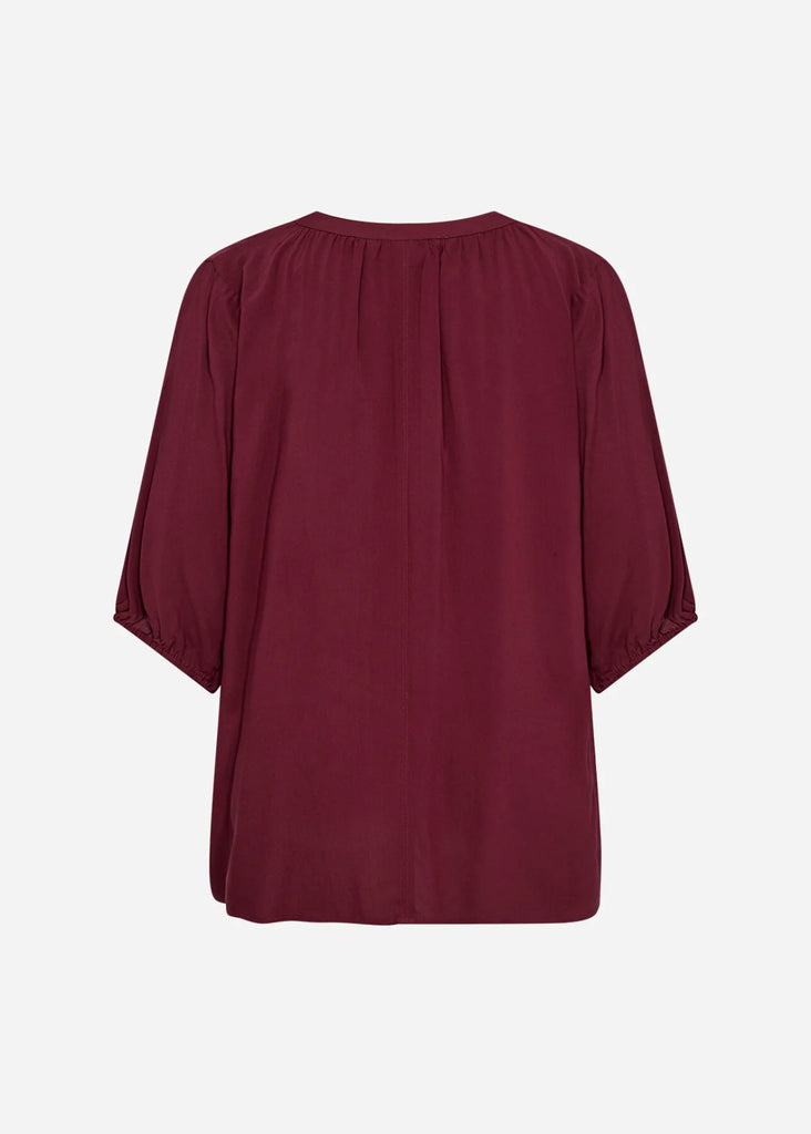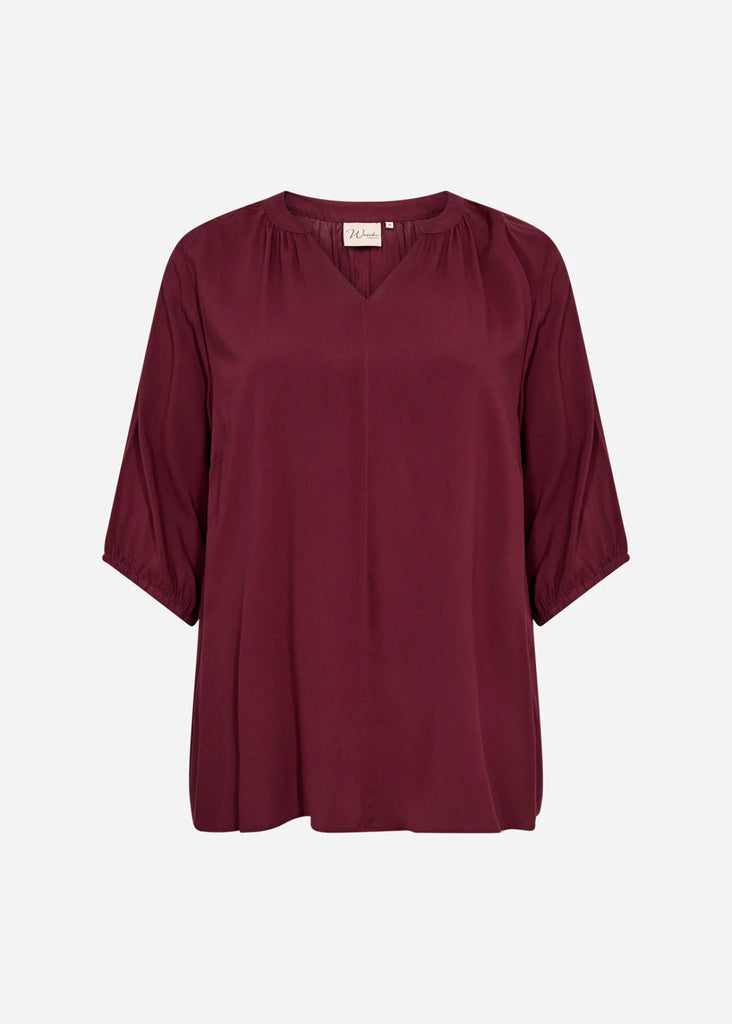WA-SIA 34 Bluse er fremstillet af 100% LENZING™ ECOVERO™ viskose. Den har V-udskæring og trekvartærmer med elastiske manchetter. Sæt den sammen med skræddersyede bukser eller en enkel nederdel for et gennemført look.