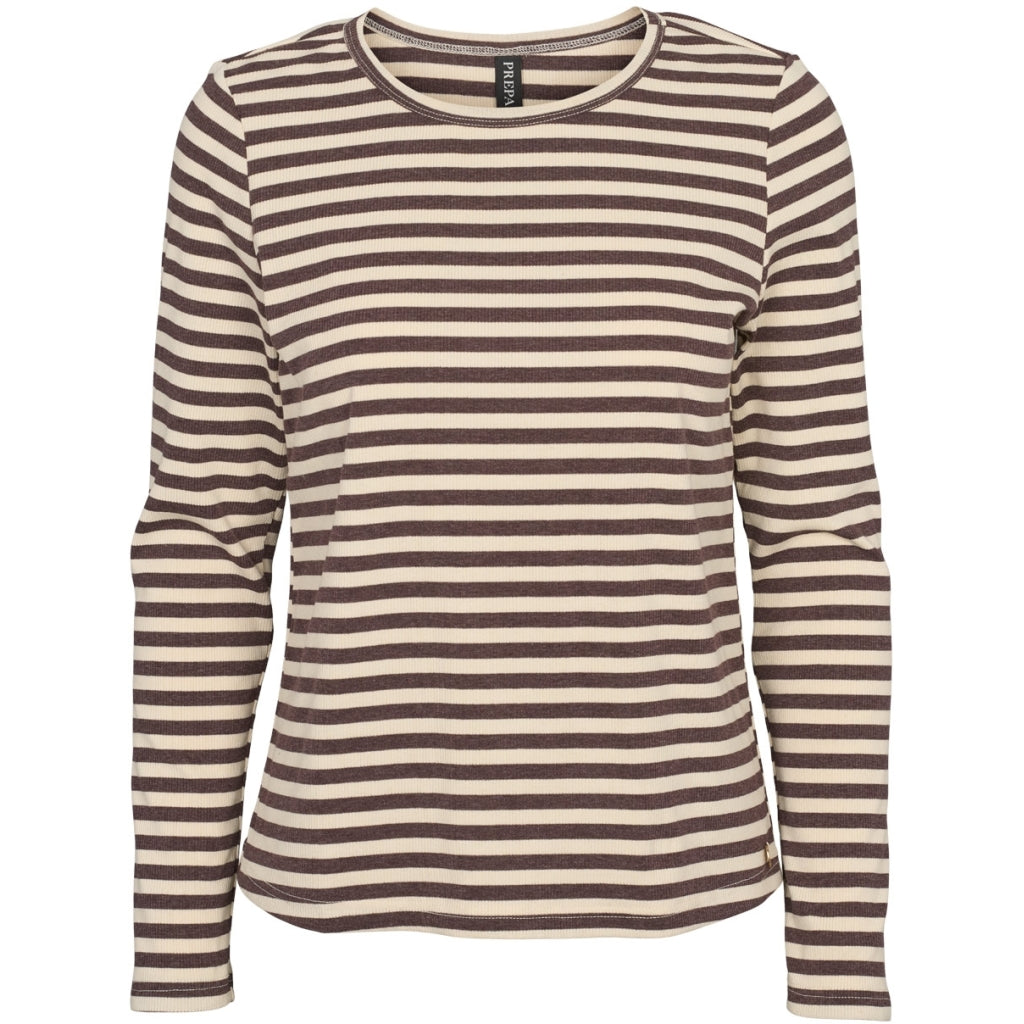 Beatrice er en langærmet bluse i en ribbet kvalitet med striber. Blusen har en rund halsudskæring og en tætsiddende pasform. Det enkelte design gør den til et must-have i enhver garderobe.