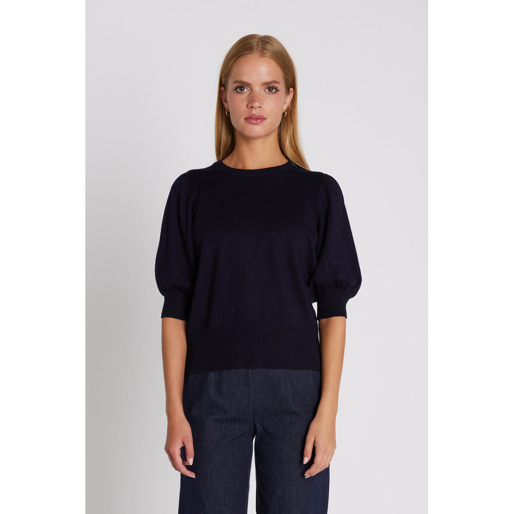 Sorrel er en elegant strik med korte, voluminøse ærmer og en klassisk rund halsudskæring. Dens minimalistiske design gør den velegnet til både hverdag og mere formelle lejligheder. Føres i flere farver
