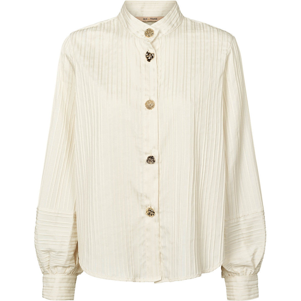 Vera skjorte er en elegant skjorte med lange ballonærmer og høj opretstående krave. De dekorative knapper foran tilfører et luksuriøst præg, der giver designet karakter og raffineret detaljering.