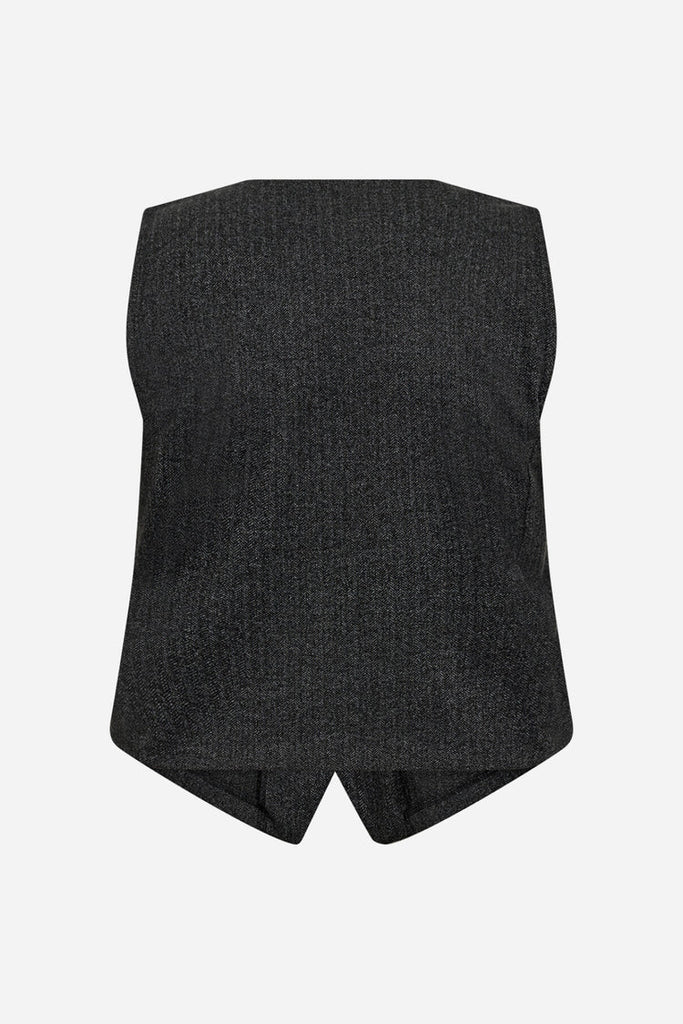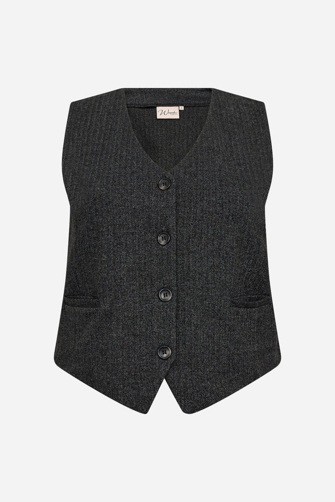 WA-NOIDA 1 er en stilfuld vest fremstillet af 50 % genanvendt viskose, 48 % LENZING™ ECOVERO™ viskose og 2 % elastan. Den har V-udskæring, fire knapper foran, sildebensstruktur og to lommer foran. Sæt den sammen med en klassisk hvid skjorte eller en afslappet T-shirt for at skabe mange forskellige looks.