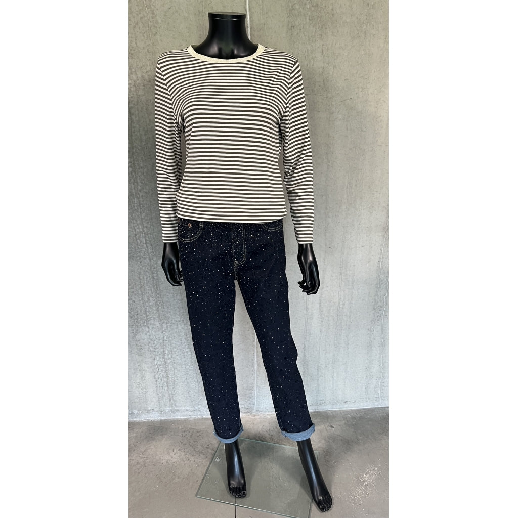 Basic T-shirt med lange ærmer, guld rib kant i halsen