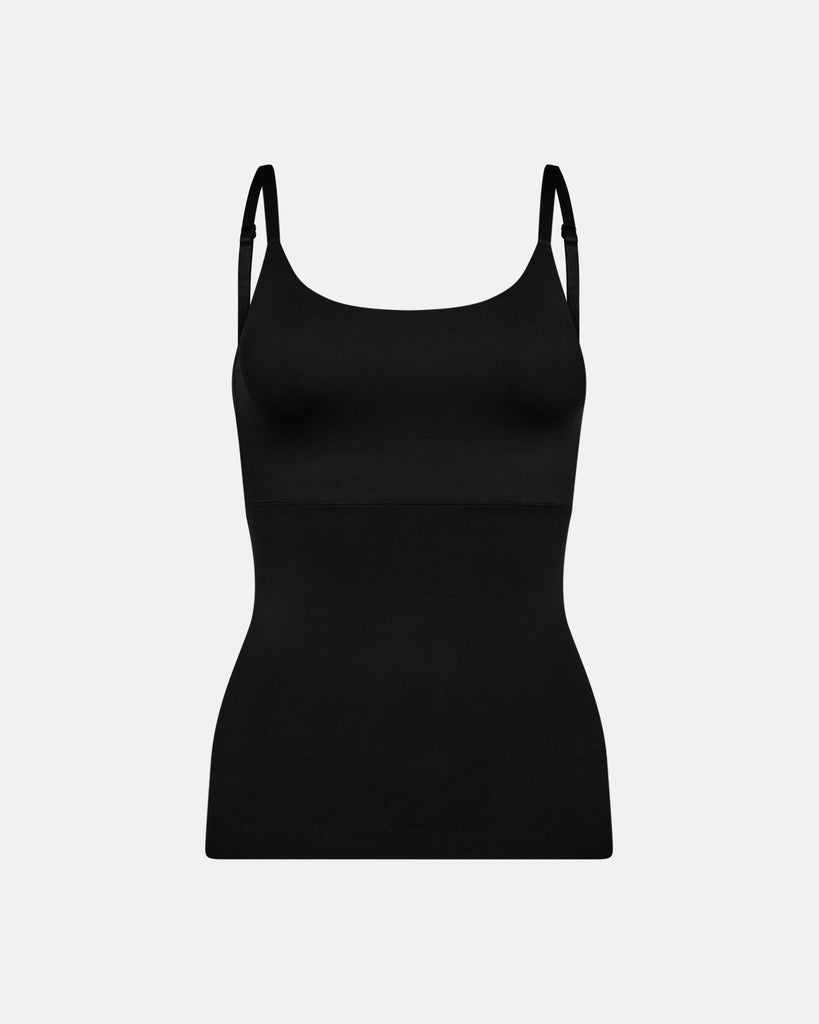 Behagelig og tætsiddende shapewear top fra Decoy med tynde stropper og dyb rund halsudskæring. Det er vigtigt ikke at vælge en størrelse for stor, da shape-effekten ellers vil gå tabt.