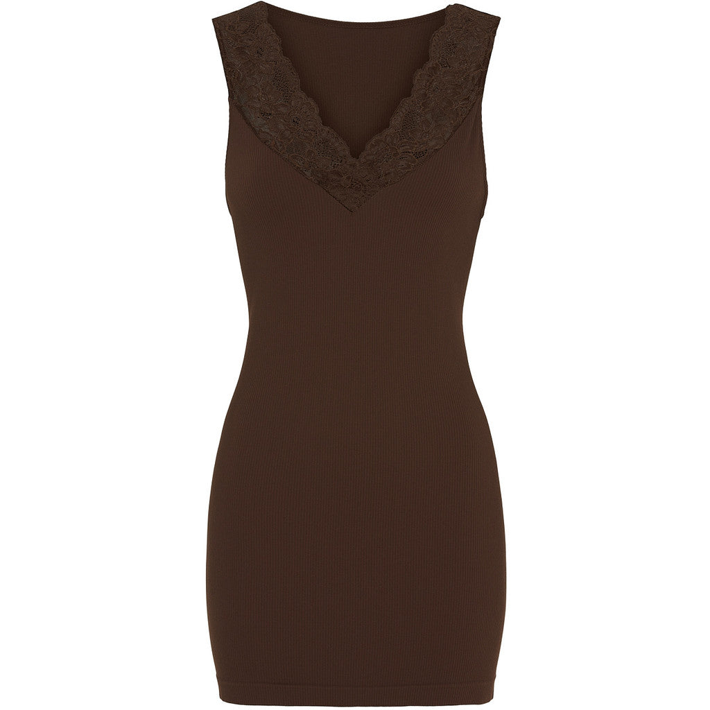 Belen Rib V-Lace Top Plus Cioccolato