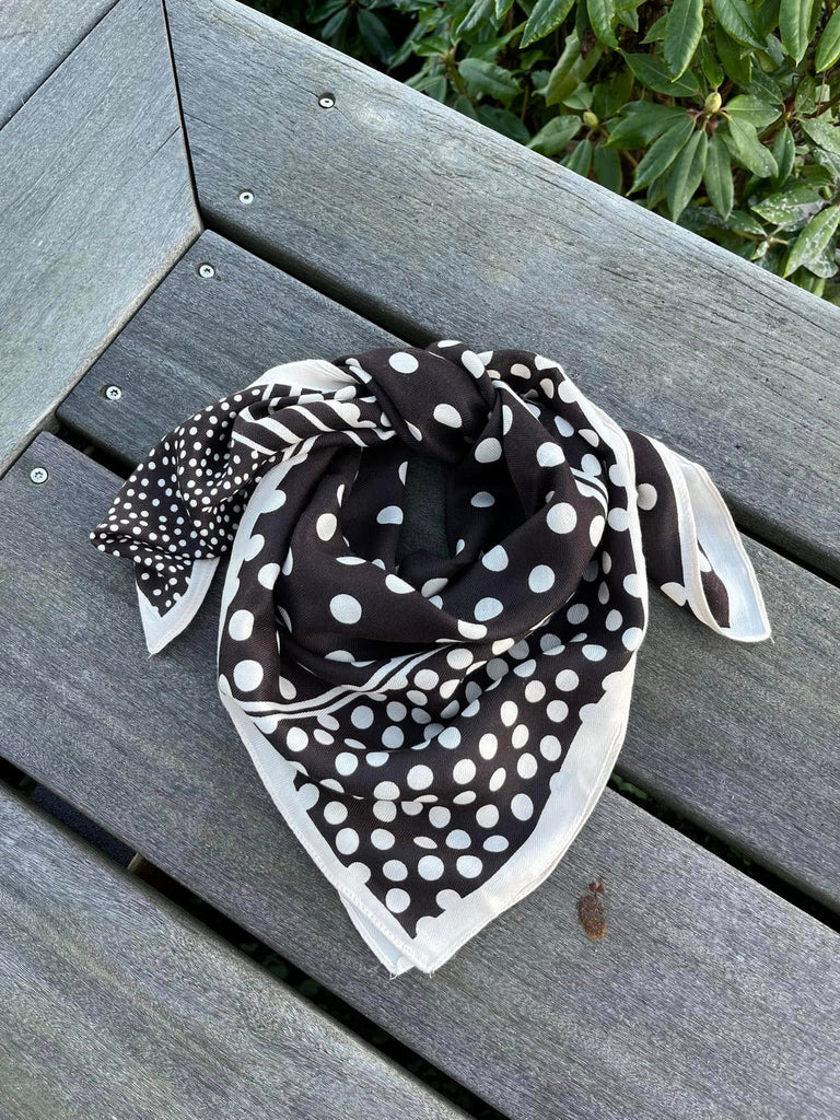 Tørklæde i brun med beige prikker.