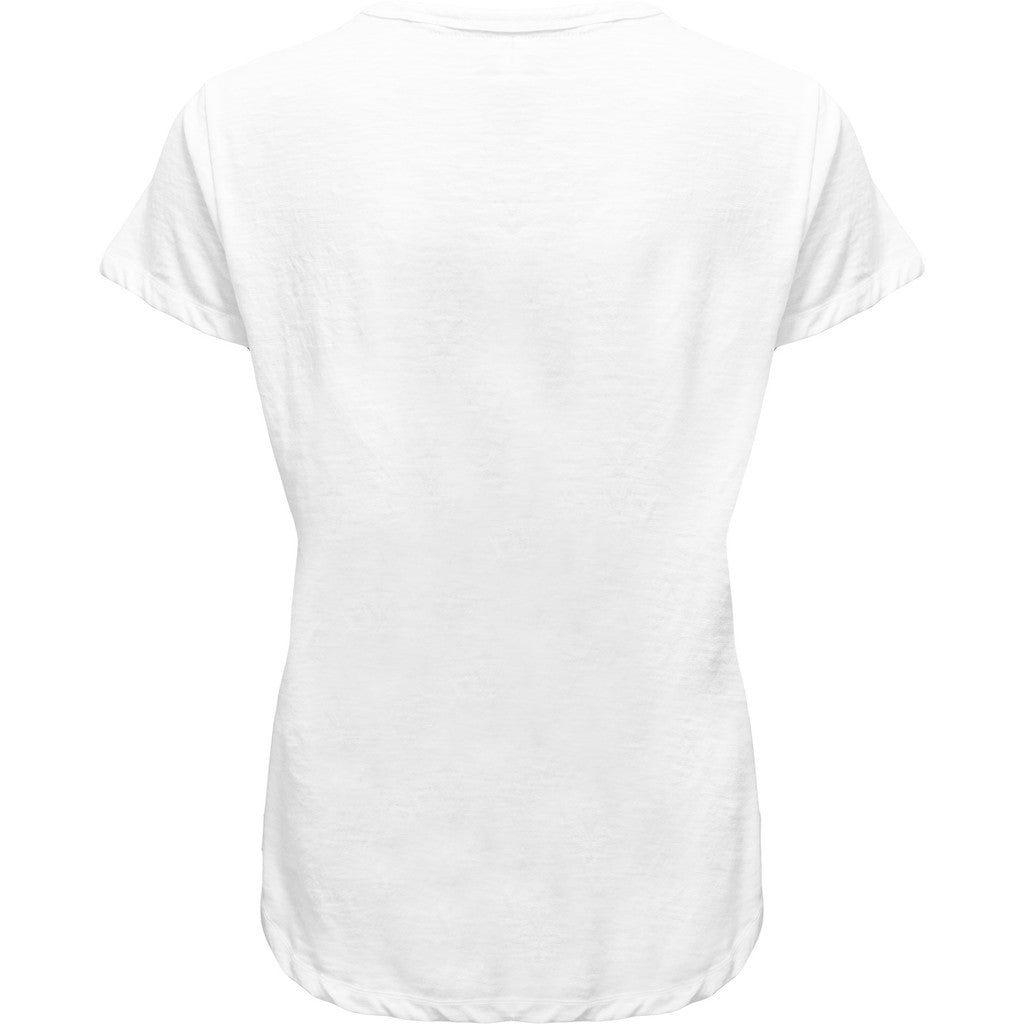 Klassisk T-shirt med grafisk print foran, der giver et moderne og afslappet udtryk. modellen har rund hals, korte ærmer og en behagelig pasform. Perfekt til hverdagsbrug og nem at style med både jeans, shorts eller nederdele.
