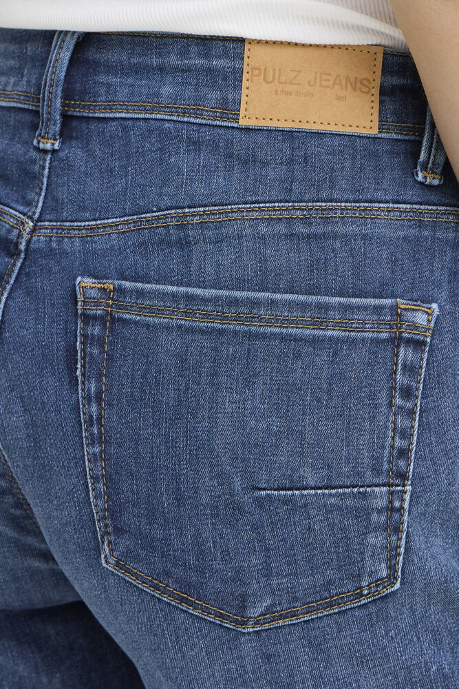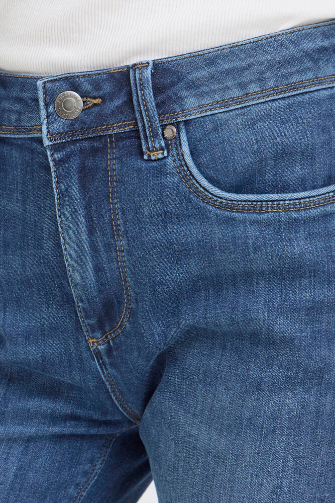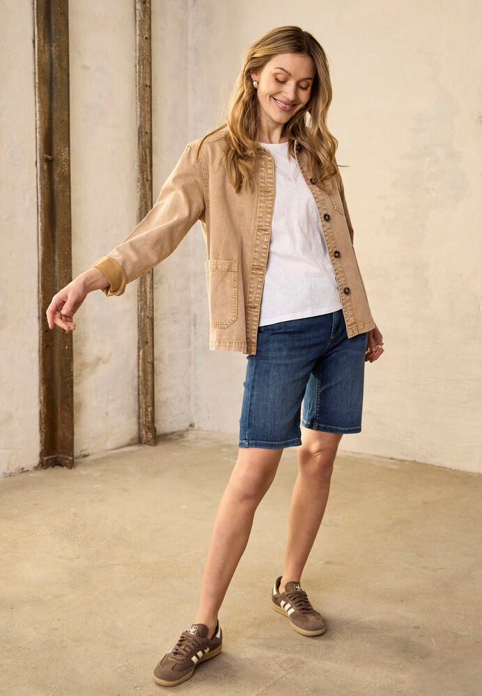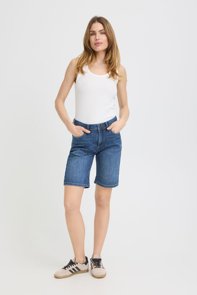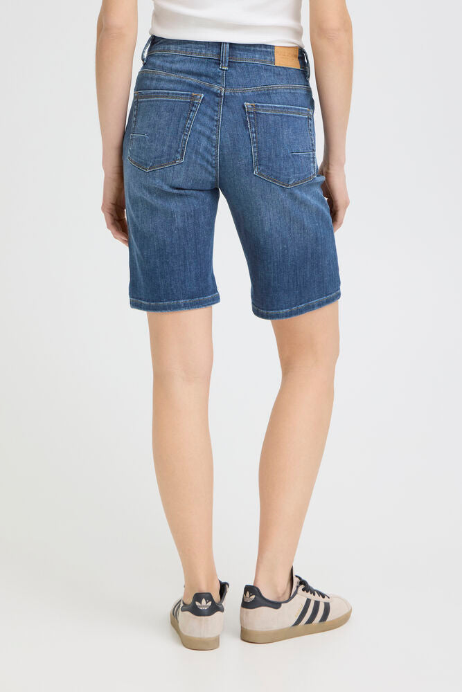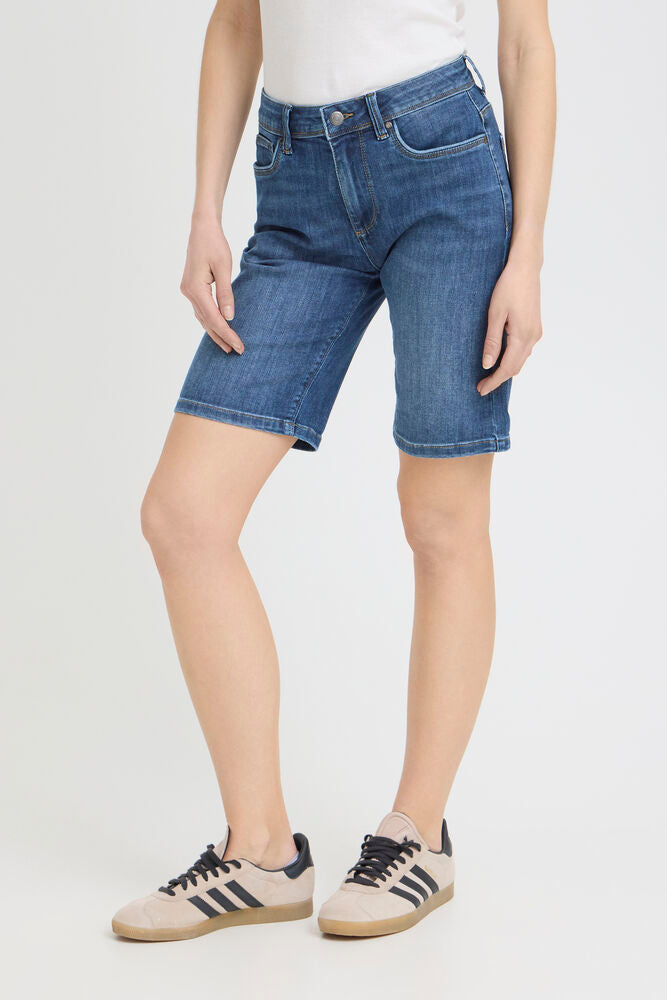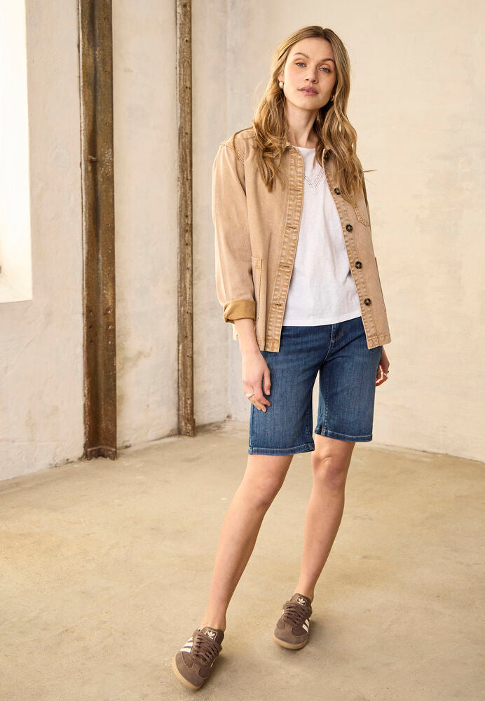 Jeansshorts med lige pasform går til over knæet og har klassisk femlommersdesign. Oprullede benkanter tilfører et afslappet udtryk.